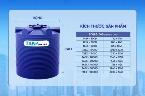Sản phẩm có nhiều dung tích, phù hợp lưu trữ nước cho các nhu cầu khác nhau từ hộ gia đình đến công trình dân dụng, công nghiệp.