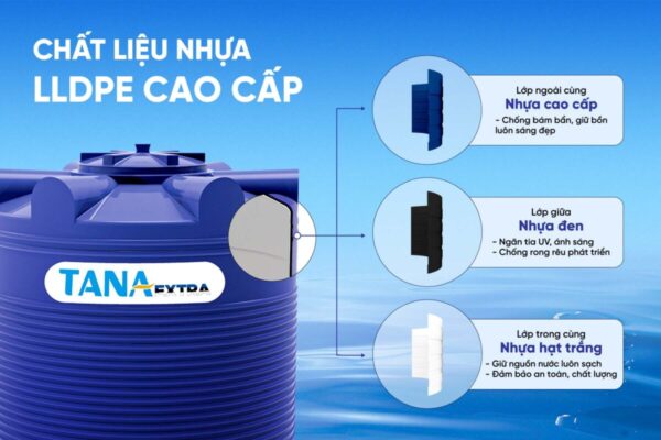 Bồn nhựa Tân Á Extra khẳng định vị thế dẫn đầu thị trường Việt Nam nhờ độ bền vượt trội cùng thiết kế tối ưu, thích nghi hoàn hảo với khí hậu nhiệt đới. Sản phẩm được chế tạo từ nhựa nguyên sinh LLDPE cao cấp nhập khẩu, ứng dụng công nghệ ép đa lớp hiện đại, không chỉ đảm bảo an toàn tuyệt đối cho nguồn nước mà còn chống chịu tốt trước thời tiết khắc nghiệt, ngăn tia UV và hạn chế rong rêu phát triển.