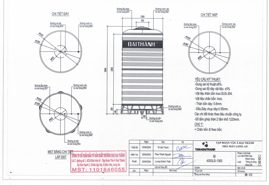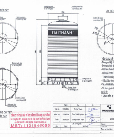 : Dung tích bồn nước Tân Á Đại Thành 4000 lít đáp ứng tốt cho gia đình lớn (8–12 người) hoặc công trình quy mô vừa.